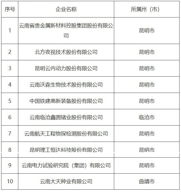云南省科技厅关于10户自主认定高层次人才高新技术企业名单公示的通知